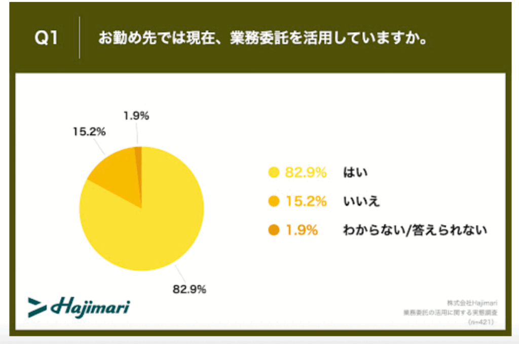 株式会社Hajimariが行った調査によると、82.9%もの企業が「業務委託を活用している」ことが明らかになりました。